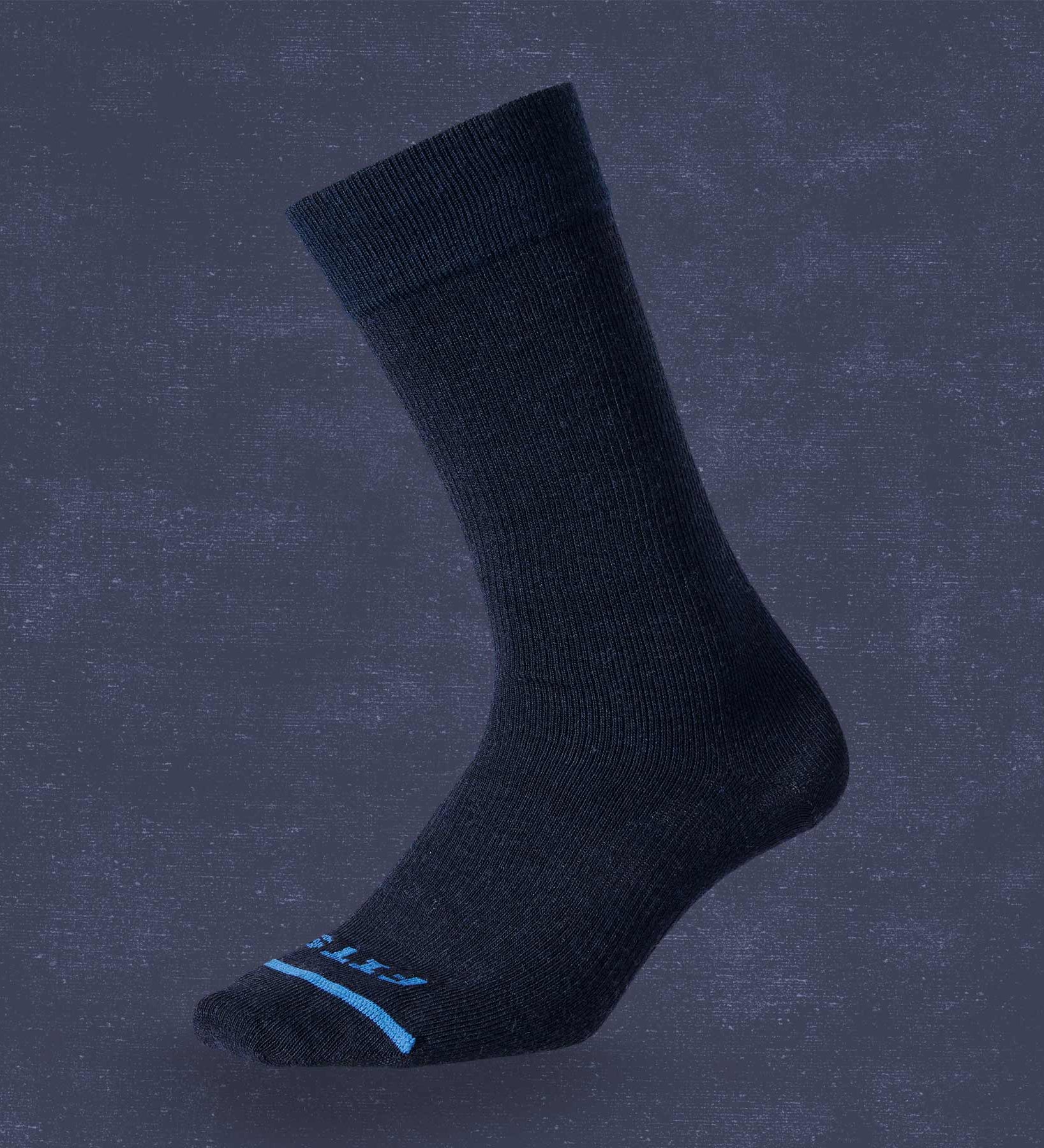 To measure your foot for socks, measure the length from the heel of your foot to the tip of your longest toe. The measurement in inches correlates to your sock size. For example, if your foot is 10 inches long, a sock size 9-11 should fit you comfortably. At FITS®, you can skip this step and find your sock size based on your shoe size using our conversion chart.